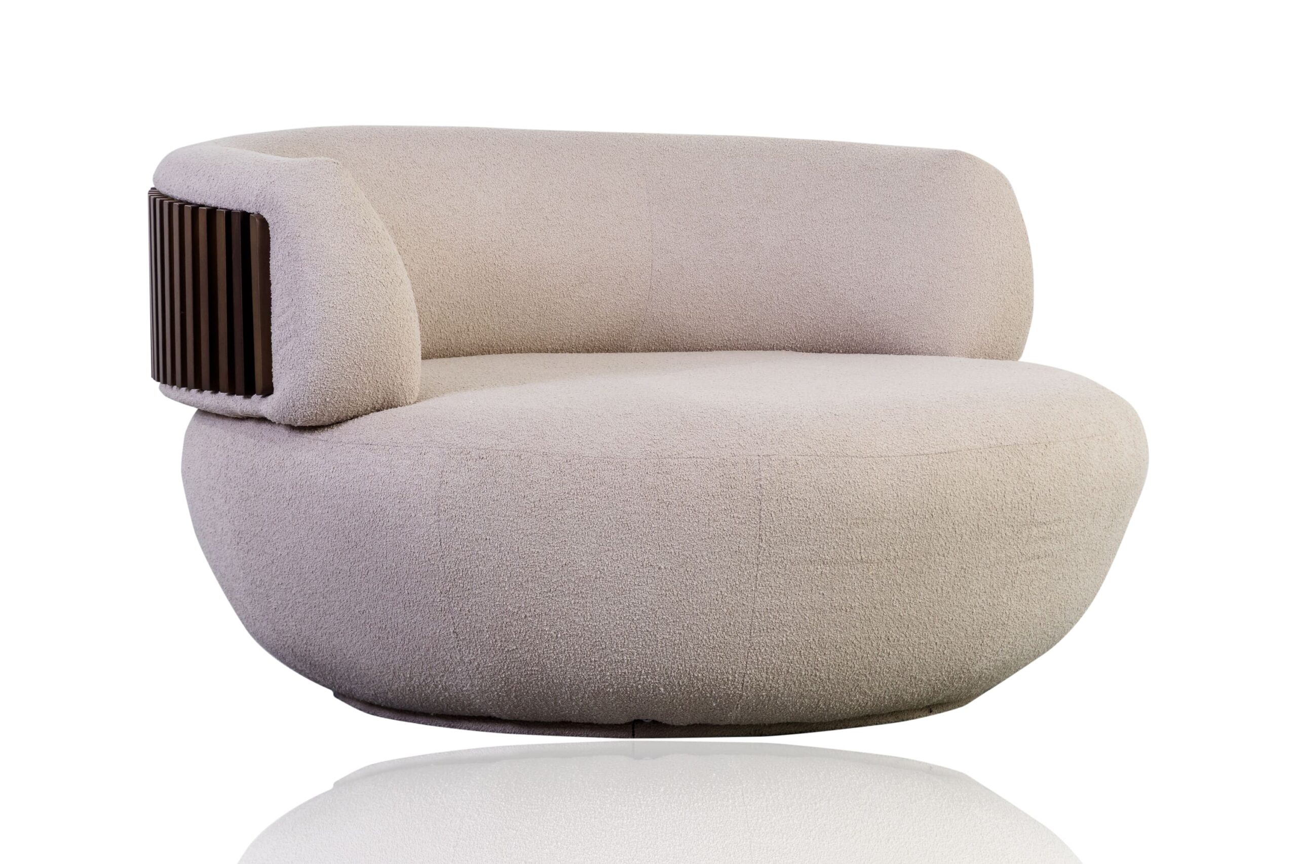 Estrutura em madeira de reflorestamento (eucalipto) com controle de umidade. Método ecologicamente correto. Na montagem da estrutura são utilizados grampos não oxidantes e cola especial e resistente. Assentos fixos com espuma HR D-30 Soft, revestida com fibra de poliéster siliconada. Encosto fixo com espuma D-18 Soft, revestida com fibra de poliéster siliconada. Sistema de conforto – Percintas elásticas trançadas com molas Bonnel.