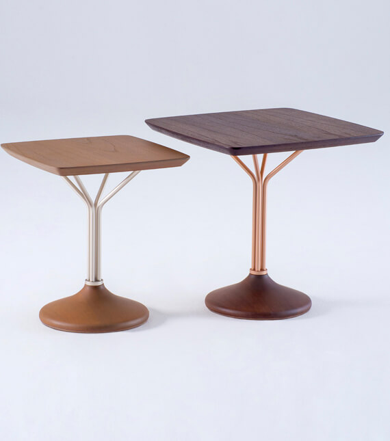 A coleção assinada pela Asa Design foi inspirada nas folhas da planta Agave. A personalidade da mesa de apoio fica por conta da base das peças compostas por perfis em tubo de aço com pinturas metalizadas, cujos ângulos fazem referência à forma e a disposição radial das folhas da Agave.