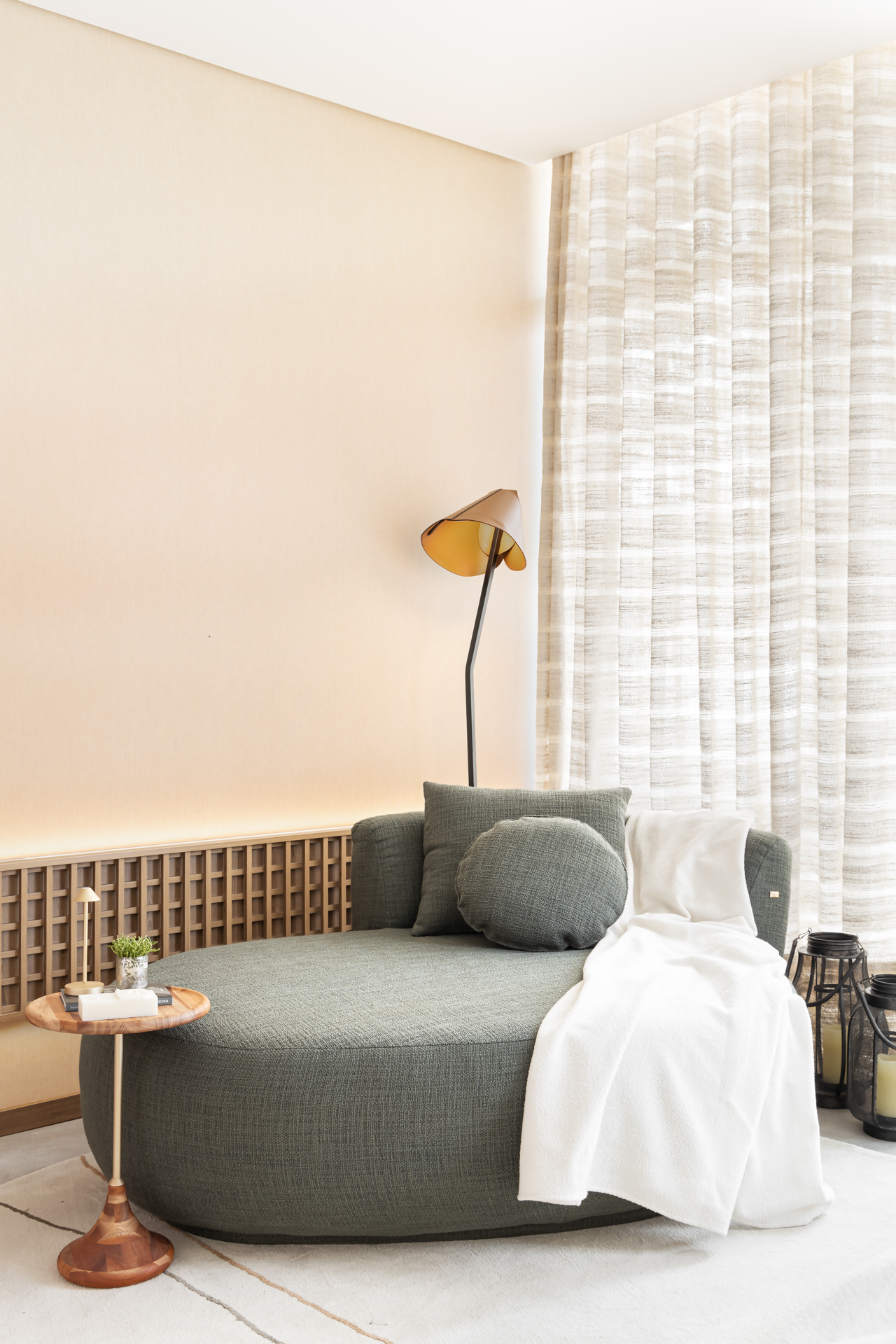 “Uma escolha perfeita para dar nome ao ambiente ‘Mar de Dentro’ e traduzir a essência do espaço. Texturas, tons pastéis, iluminação intimista, mobiliário escolhido a dedo, bem contemporâneo — tudo pensado para proporcionar relaxamento, aconchego, paz, equilíbrio e leveza”, afirma a arquiteta.